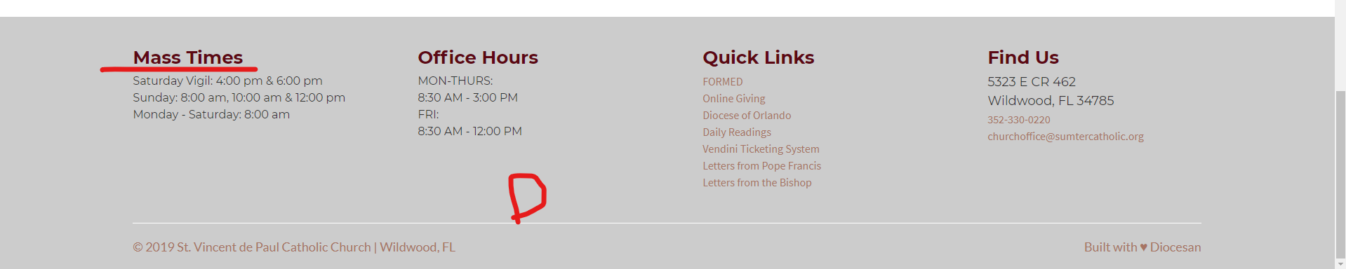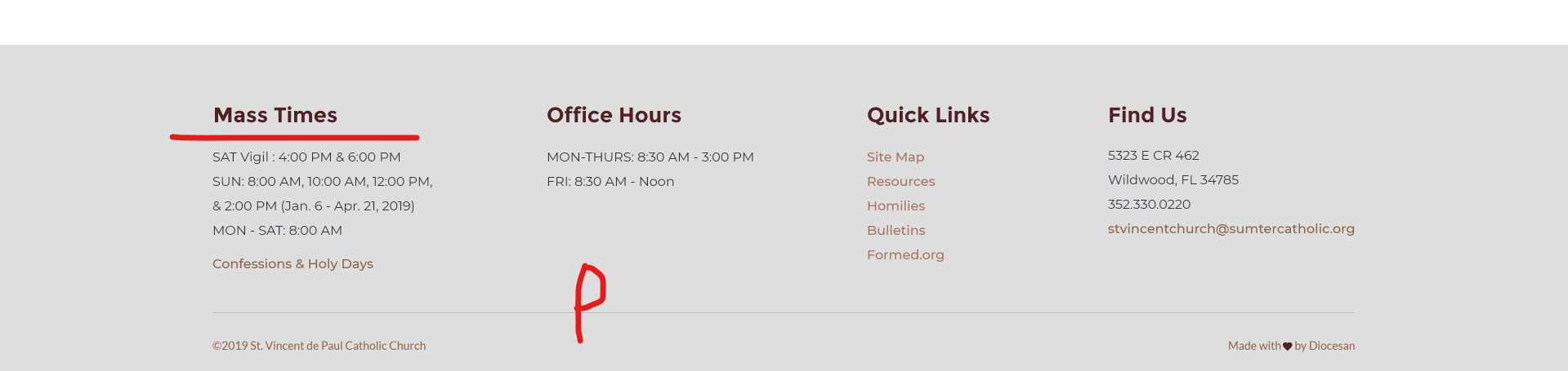 I showed Mass Times below where you can see the difference of the line touching both title and content in dev and the line not touching either in the proof. If it is too much then just leave it.