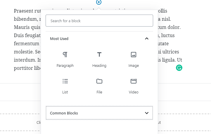 ✔ Gutenberg - Need all normal blocks available plus Image Banner, Image Buttons, Left and Right sidebar.