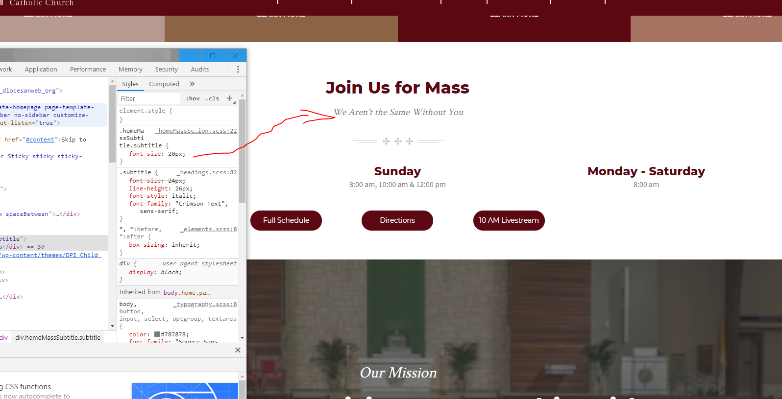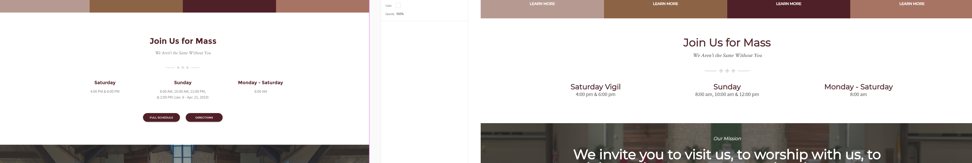 Mock-up versus actual - Section Title ("Join Us for Mass") should match mock-up