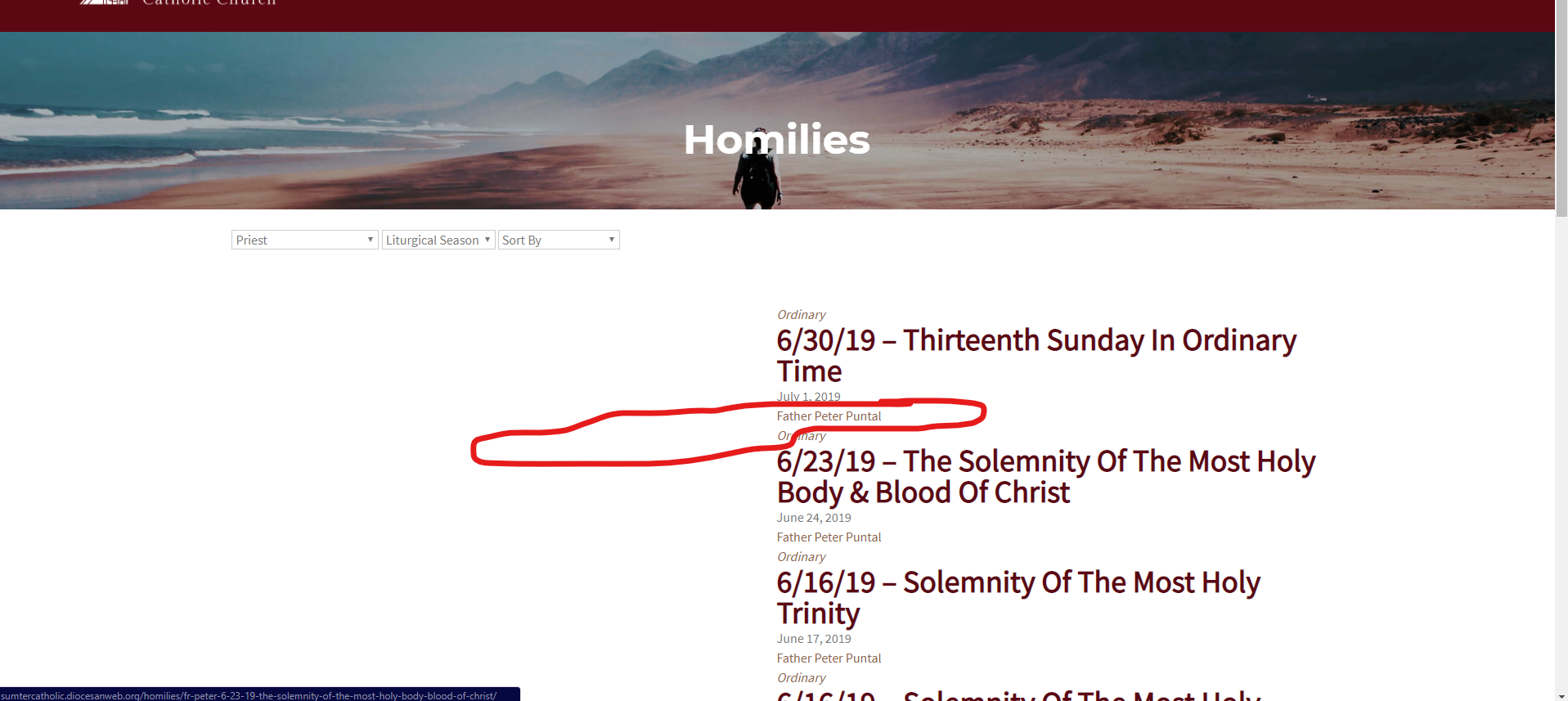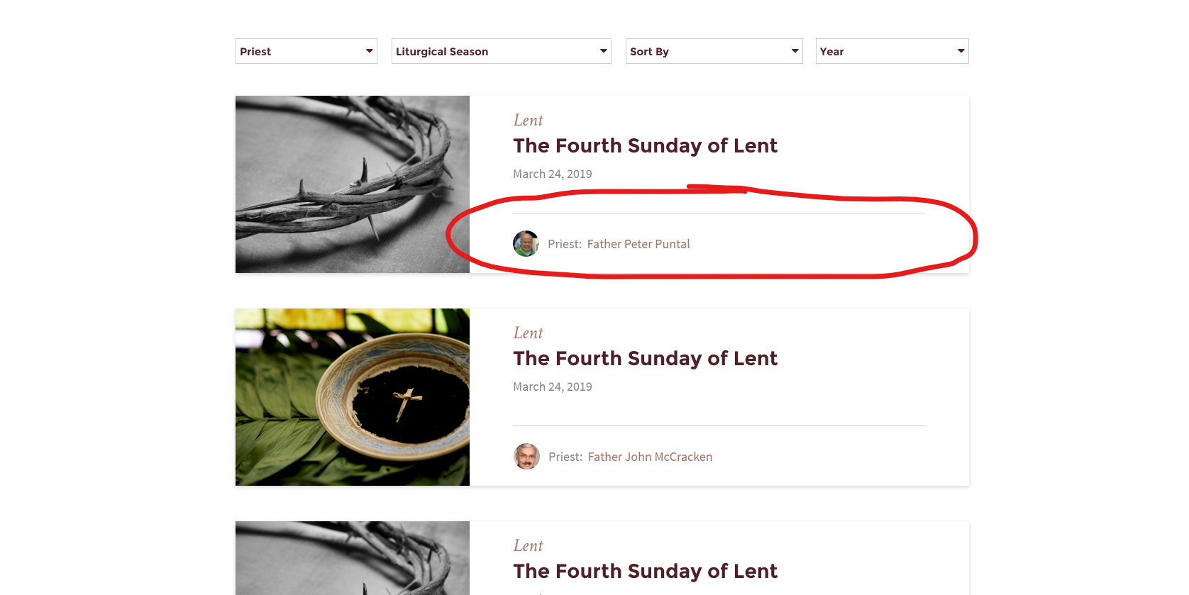 - Need the word "Priest" or the Category idea I had in a separate to-do about the individual homily page, in case there are any deacons, but for now just do "Priest".