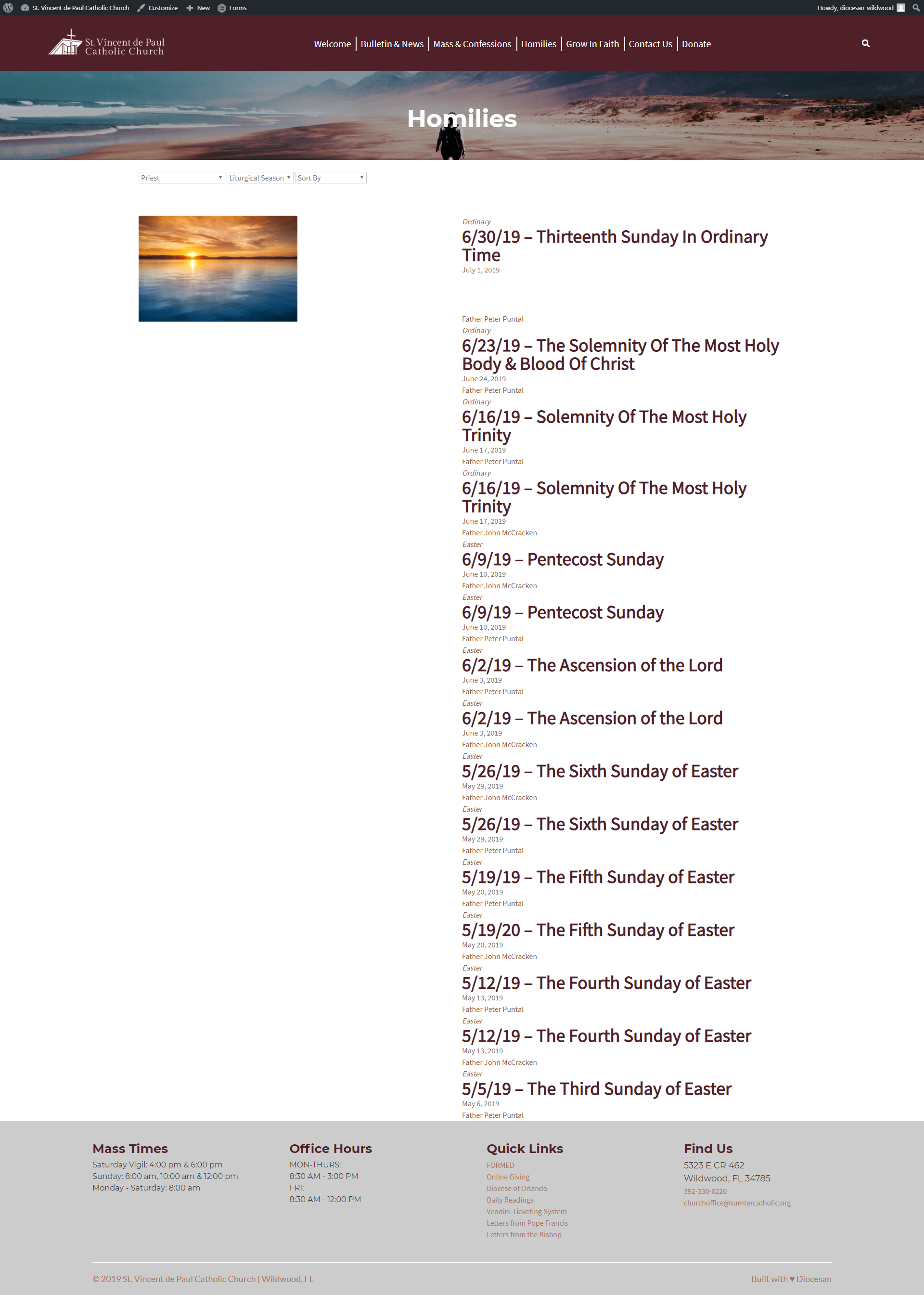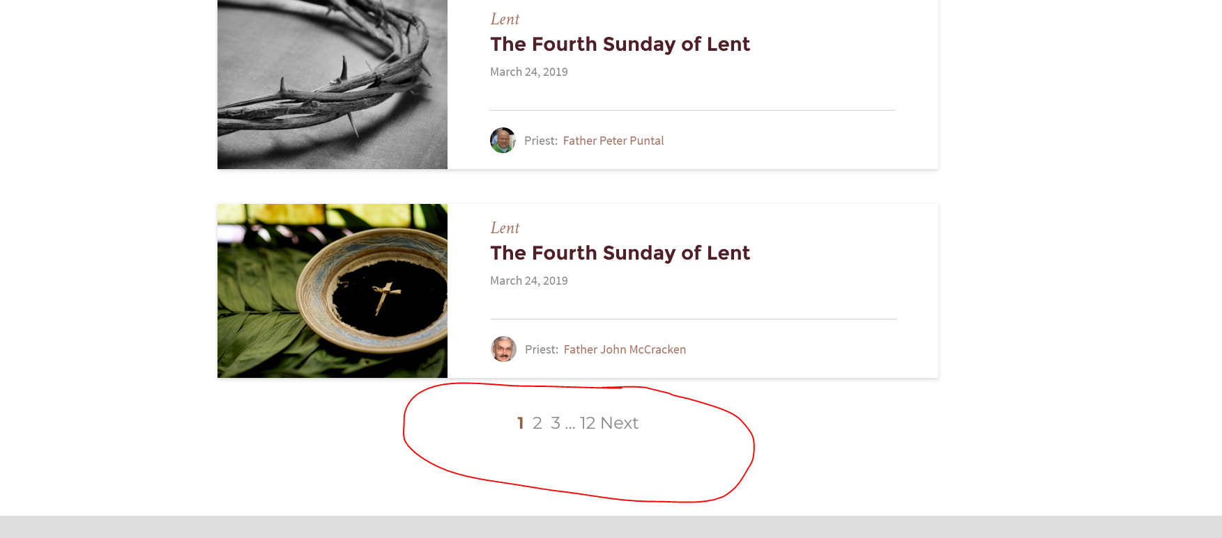 Four Homilies per page, needs to a way to scroll through each page, pagination.