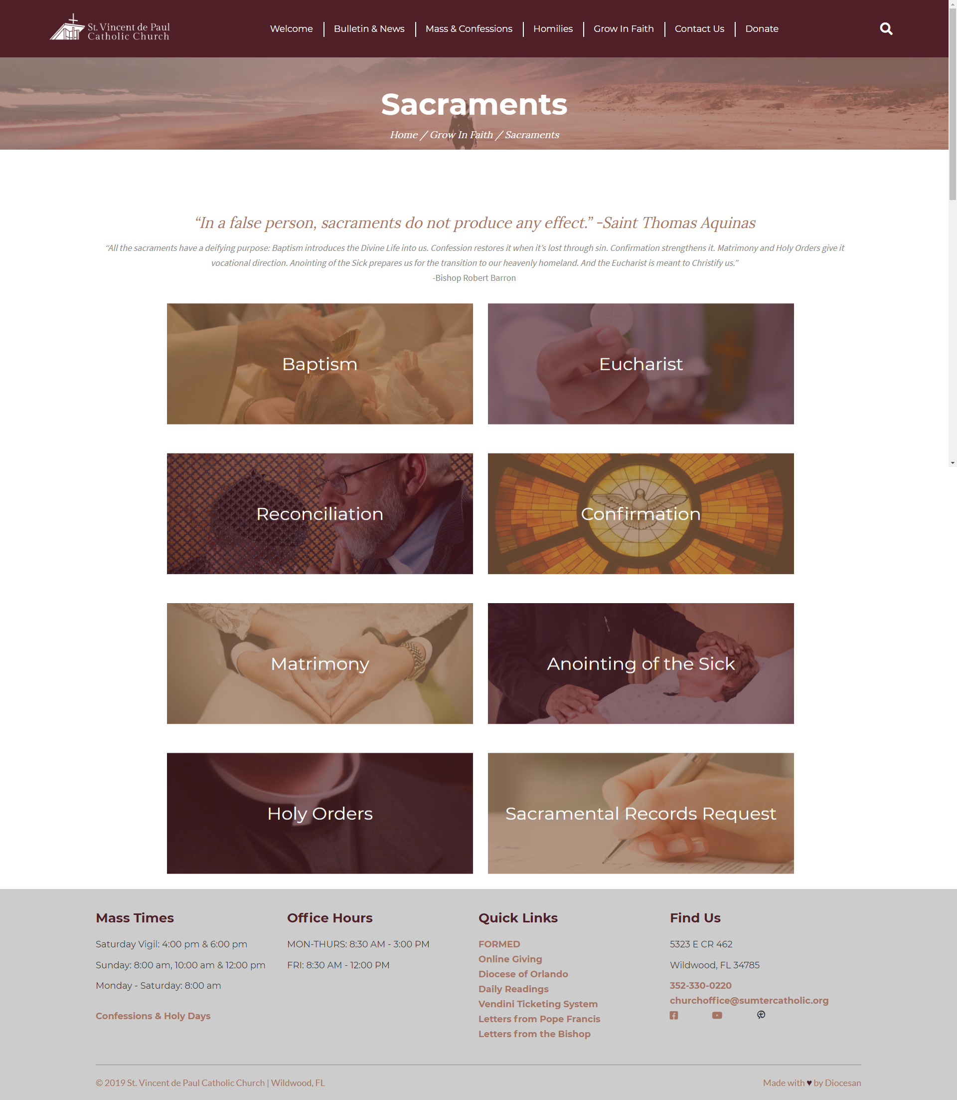 ✔ Make a mock up like the sacraments proof with different overlays similar to https://www.sacredheartgr.org/sacraments/ with the two different colors.