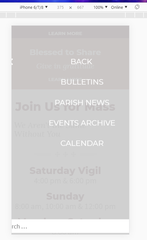 I had to scroll down past the 'X' in order to see the Search bar. It should be closer to the Menu Items. Thanks.