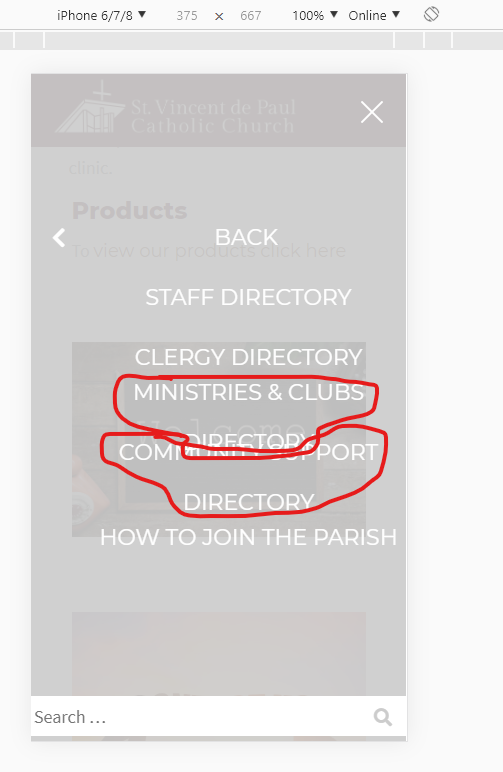Under the "Contact Us" Main Menu, on mobile, it looks off before of the line-height possibly or change the margins so that they look distinct for each sub-menu item.