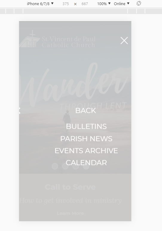 The Back arrow is off the edge of the screen. It should be closer to the Back Menu Item.