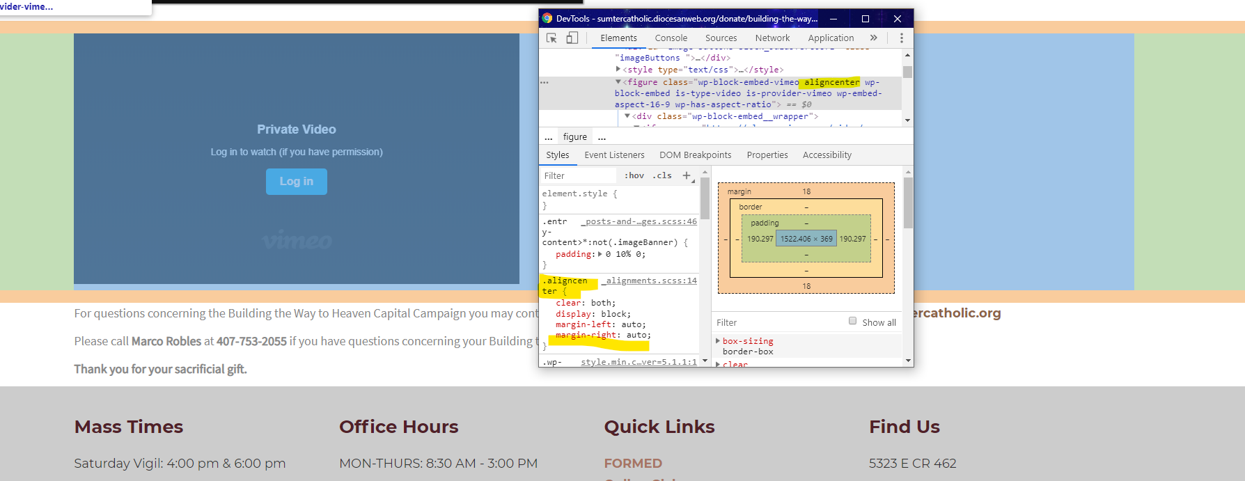 Need to add text-align: center to the aligncenter class otherwise embeds don't move. Thanks. This change has been added to the parent theme, but I believe it was added after the start of this project.