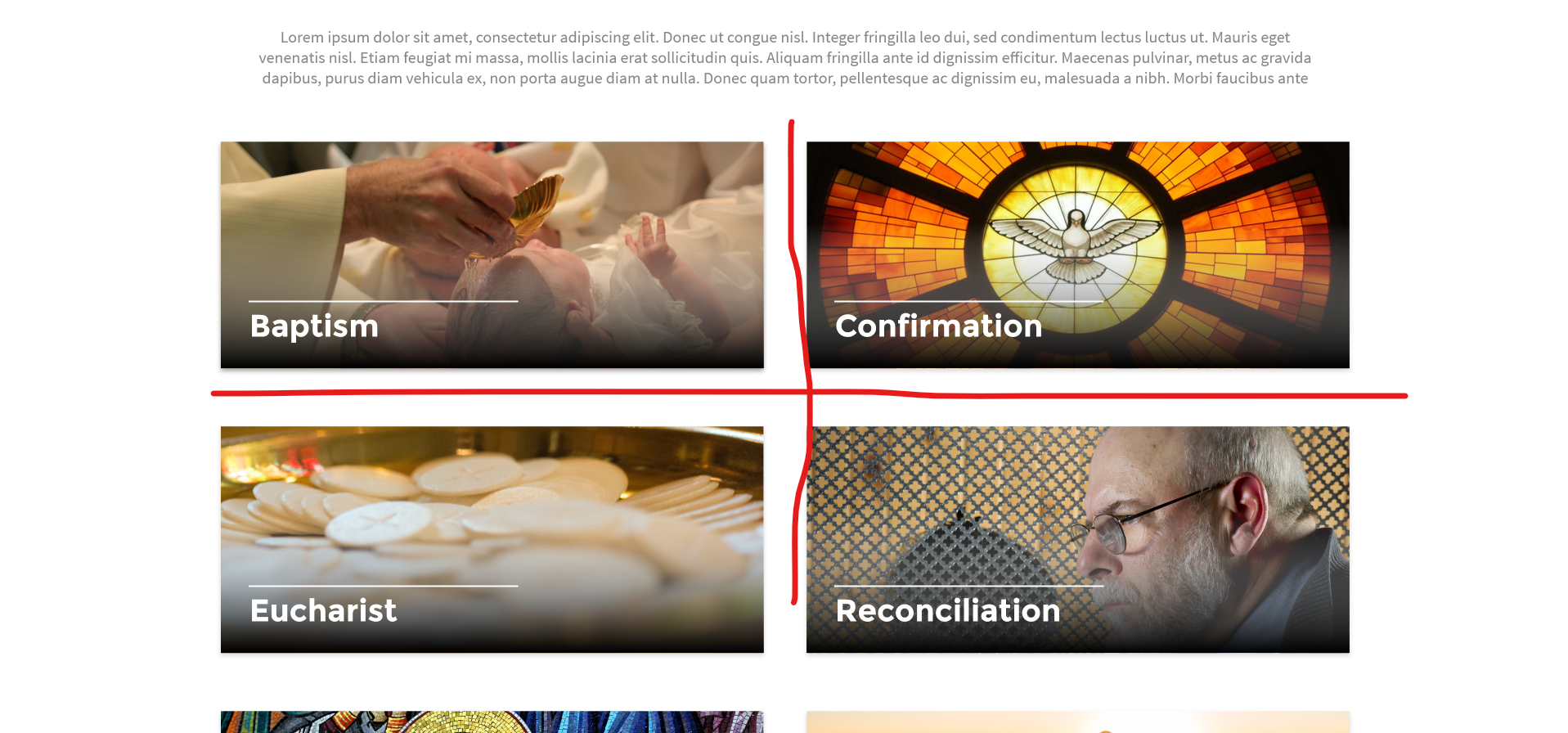✔ Page - Image Buttons, Sacraments Page as example, Margins between buttons should be the same top-bottom and left-right