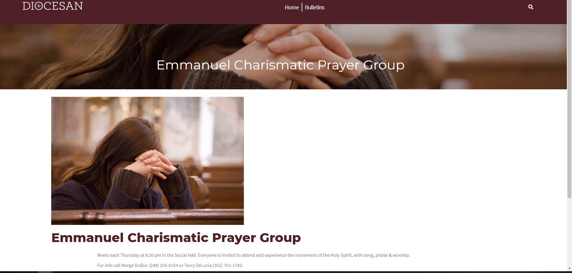 Default featured image, default page title (Parish News), Featured image for post to the left, title, date, content on the right side. see Veronica's thing below. current is at the bottom