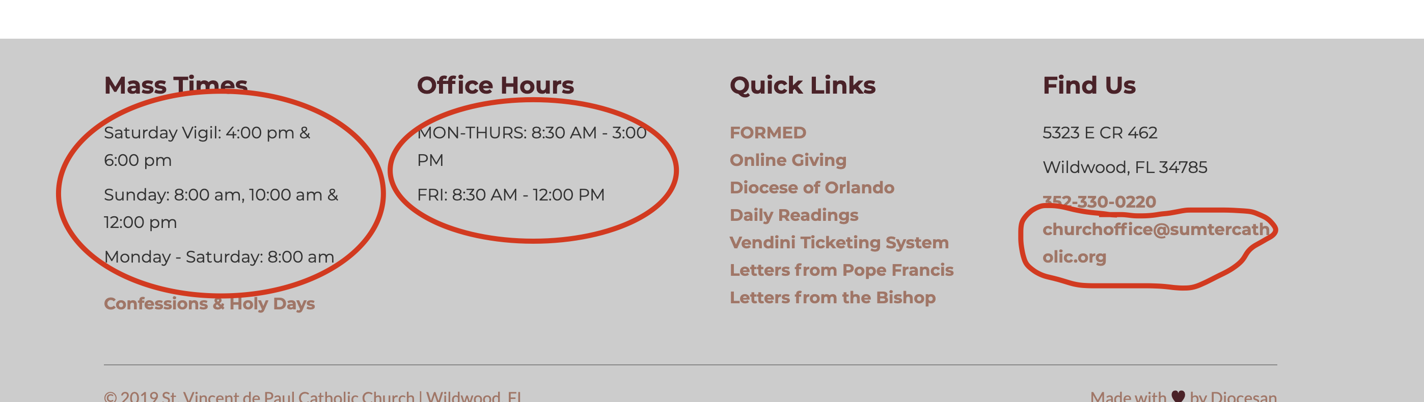 ✔ Remove padding so that Mass Times and Office Hours and Email fit on one line